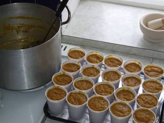 Finally... Allow to cool for an hour or two then ladle into about 20 disposable plastic cups, cool completely then store in the freezer. |