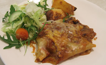 Build up in layers starting with the cooked lamb until all the cooked ingredients are used up |